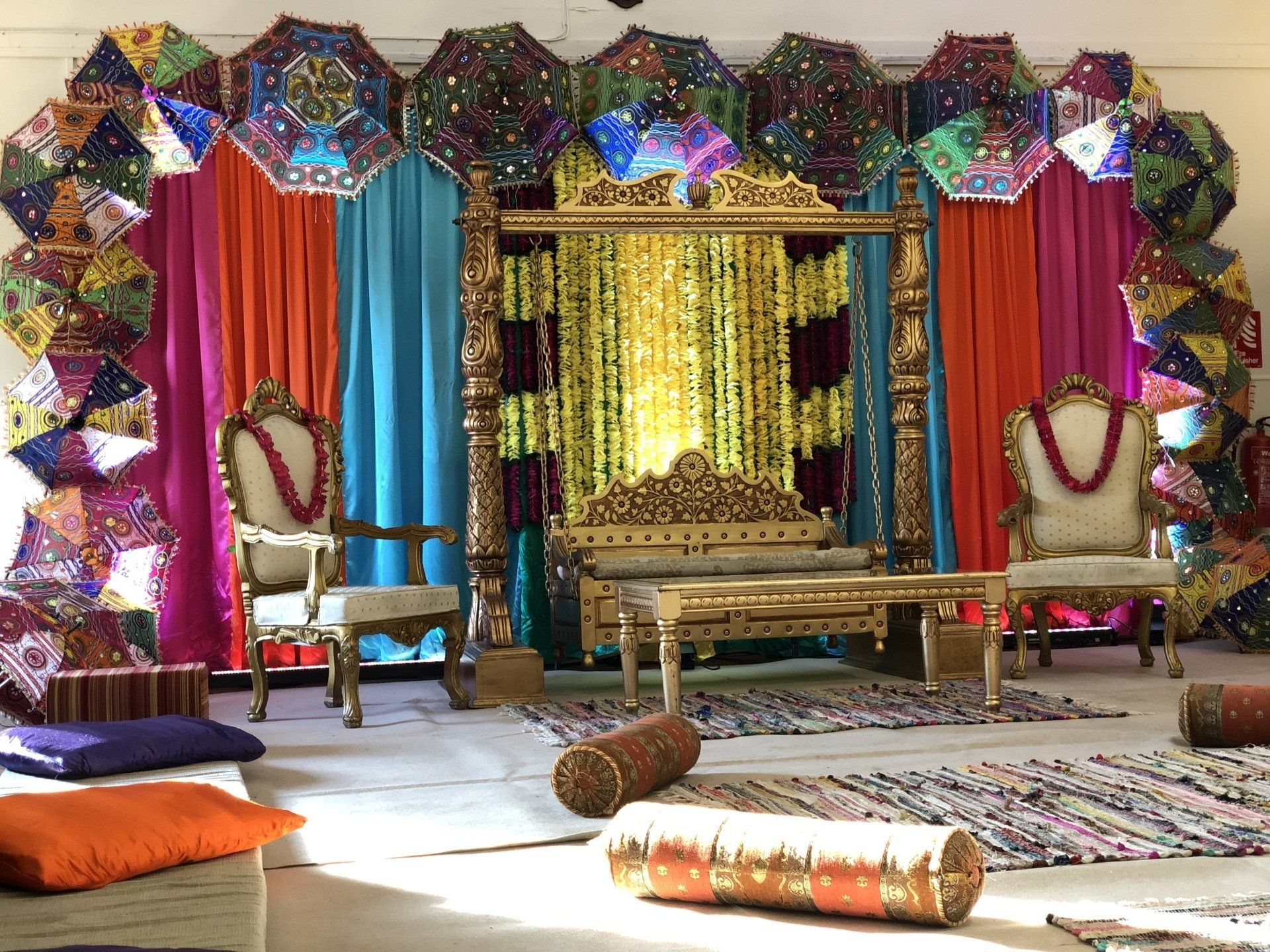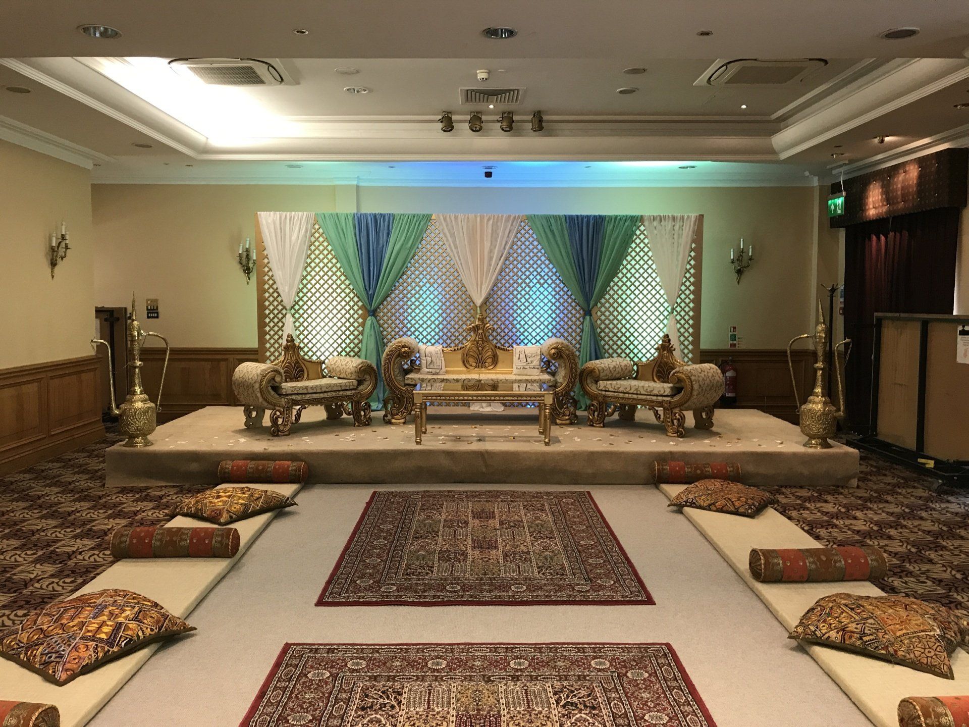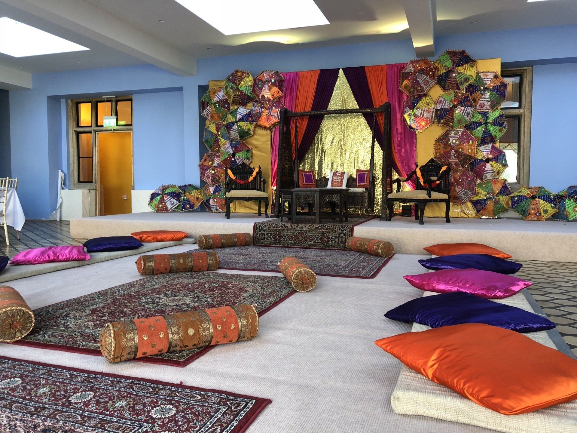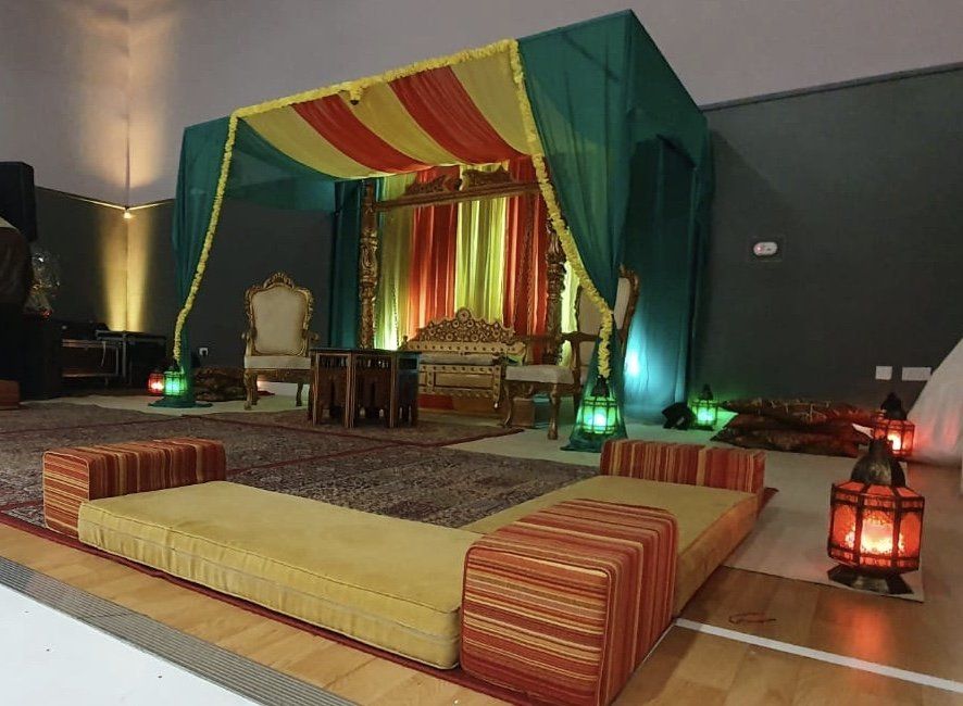 The pre wedding event that is the Mehndi typically involves lots of color and fun. Using our vast range of props and furniture such as floral garlands, lighting, rugs and cushions along with a number of different swing seats we are very placed to create a scheme that will live long in the memory of both you and your guests.